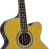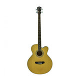 This Four-String AB Acoustic Bass is designed for the Bassist in need of a Classic Cutaway Instrument that can do it all. The Large, Acoustic Bass Body, crafted with a Spruce top and Mahogany back & sides were made for Articulate, Booming and Rich Tones that are easily Projected even in an unplugged setting. Premium Fishman Electronics transport the Bass' Incredible Tone to a sound system or home studio. The Fishman Preamp includes a Tuner, Volume Knob, Equalizer, and a Phase Control. Give a New Direction to your Sound with these Superb Electronics! The Modern, Maple Neck Design and Smooth Back Finish provides the Bassist with Great Comfort and Fast, Fluid Performance.