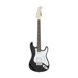 The ST-style electric guitar has been around since the mid-1950's and its popularity shows no signs of slowing down. ST's are known for their horn shaped bodies that give it excellent weight distribution when worn on a strap. Although it's in a smaller package, the ST-MINI still delivers. The 3-way pickup selecting blade coupled with a tone and a volume knob give you intuitive control over the classic single-coil pickup in the neck, and the humbucker in the bridge position. It's hard to go wrong with a (mini) classic.Features: