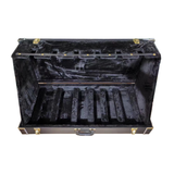 Protect 6 electric guitars, 3 acoustic or a mix of both with the CNZ Audio guitar rack stand case in an attractive stage-worthy design. This stand-up designed guitar rack folds into an easy to carry travel and storage case with easy and quick stage setup. The guitar rack holds guitars vertical with 6 plush neck pockets and snap lock straps to securely hold them in place. The base has a plush interior with 6 plush foam pads to separate and protect the guitar bodies. The durable 3-ply wood interior supports and hard case exterior attractively covered in textured and coated black Tolex with white pinstripe and over-stitching.