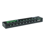 This Pedal Power Bolt Mini Power Supply Provides 9 Regulated, Clean Power Outputs for Guitar Effects Pedals with Automatic Overload & Short Circuit Protection on Each Output that Resets when Disconnected. Outputs include 7 x 9VDC 200mA, 1 x 12VDC 200 mA, 1 x 18 VDC 200 mA and 1 USB Output for Powering a Phone or Tablet. This Powerful Device can be Mounted Anywhere with it's Tiny 6.3 x 1.47 x .7 inch Package and weighs a mere .19 lbs. The Mini Power Supply saves precious footprint on your board, provides clean power and protection for your pedals plus a cost savings over other devices with similar features.