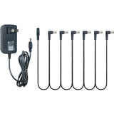 The CNZ 6 Output Power Supply provides 1 Amp, 9 Volt DC with a 6 jumper output connector to power up to 6 guitar effects pedals. It is a Wall Mount Power Supply with a 56 inch cable to a single connector to supply power to a standard polarity effects pedal. The polarity of the connector is Negative Center & Positive Outside Barrel.