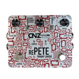 Although you may not expect it at first glance, loopers have a lot of really practical uses. Maybe you want to make your own rhythm track to solo over. Maybe you want to add another layer to your solo-acoustic set. Maybe you just want to record yourself, set your guitar down, and go hear how you sound to the audience. The opportunities are endless. Our RePete series of loopers come with a free software download software (PC only) so you can upload and download tracks to and from your computer. They're equipped with True Bypass circuitry so the pedal doesn't change your tone in recording or playback. CNZ RePete pedals employ 24 bit @ 48kHz sampling (aka, better than a standard CD). That's over 16,000,000 levels of audio energy that get sampled 48,000 times per-second... if you were curious.